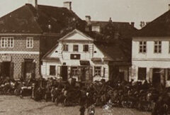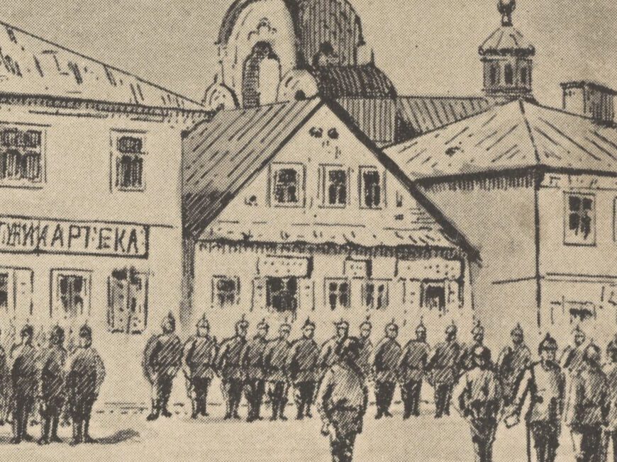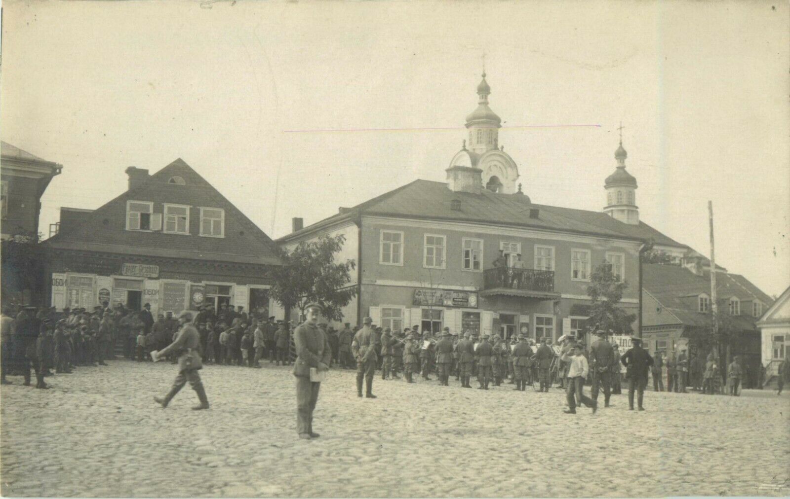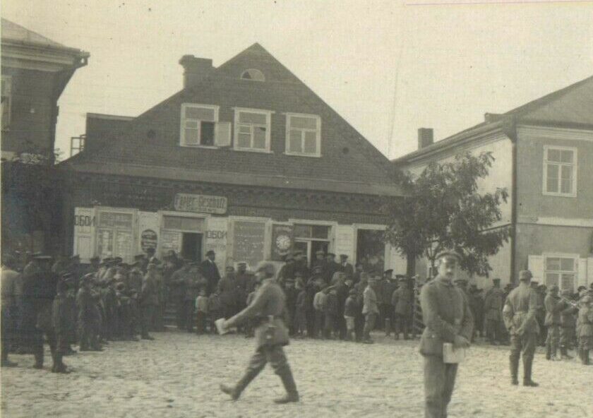 Паўднёва-заходні бок плошчы ў 1916. Двухпавярховы дом № 2 па цэнтры.